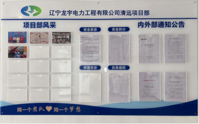 3、班组建设的宣传墙面,是项目部文化墙建设中占比最大的区域,它涵盖机务、电仪、保洁班组墙面建设及项目部走廊公示牌建设。展示的内容丰富多样,首先是班组的成立与简介,通过文字和班组标志图片的结合,排列着班组的通知公告、安全学习、人员资质、值班及开展各项工作时拍摄的风采照片等,呈现了班组的光辉历程和骄人业绩。