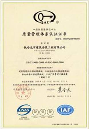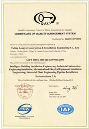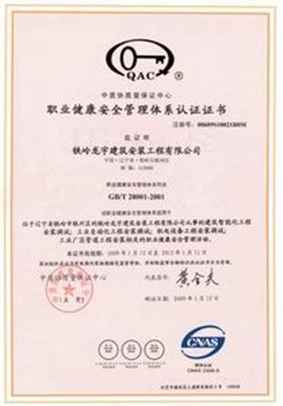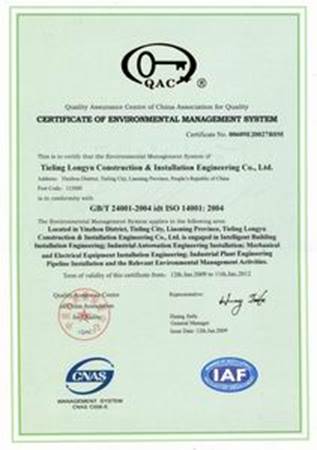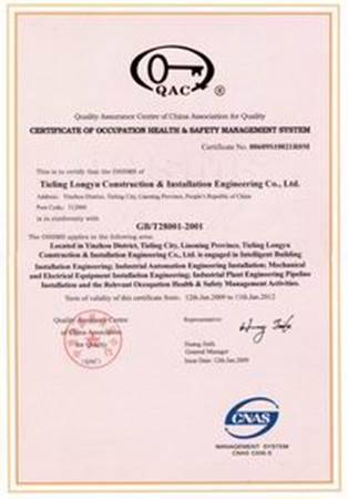 公司已于2009年1月16日通过质量/环境/职业健康安全三体系认证。
