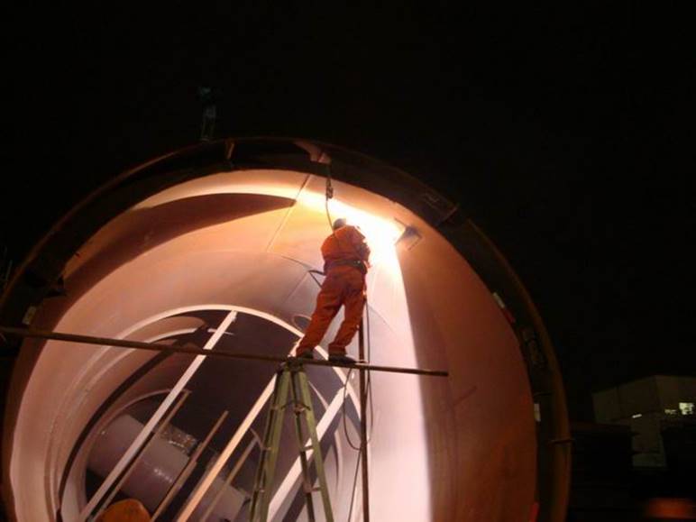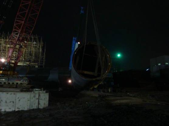 我公司承建的上海石洞口二电厂二期660MW脱碳工程已于今日正式施工,工期紧、任务急,经过精心准备,职工们昼夜施工,仅用二十二个小时的紧张施工于今日早晨七点将单节高度40.5米吸收塔和再生塔下段顺利安装就位。