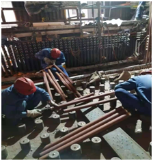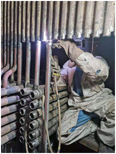 今年八月份,我们接到了电厂1#机组锅炉外置床再热器管排检修的任务。众所周知,此电厂外置床管排泄露问题一直是令中外专家一筹莫展的课题,每次处理都需要动员方方面面的力量,而此次检修难度更大。我们不仅需要把全部管排从包墙水冷壁内全部切割拆除并运回地面修复加固,而且要重新吊装回装到原位。这相当于锅炉改造项目且有甚于改造,不仅仅工作程序复杂,任务量大,而且涉及多工种联合交叉作业,而此时恰逢全球新冠疫情,人员短缺,国内技术骨干不能及时回来的窘境。艰苦的现场工作环境和气候条件,施工进度能否有效保证?现有人员能否适应超负荷工作量……,种种难题摆在了我们面前!知行合一,行动是最好的解决办法。我们积极做好检修前工作准备,熟悉图纸和作业指导书,把工器具、材料准备事先备好,在项目部统一领导下协调业主、监理等单位,在保证施工安全、质量的前提下合理安排施工方案,每一步做到精而细。提出强化过程控制,严格控制施工质量,力争做到每一道工序一次成功,一次无损检测合格,不留尾工返修活,当日工作当日毕。深入挖掘每位员工潜力和工作热情,精诚合作,团结一心把工作做实做精,同时我们实行“现场工作制”,所有负责人全面深入现场,深入班组,全面现场解决工作中的实际问题,不推诿不搞形式主义,做到早发现早解决。合理安排工作、休息时间,需要加班的时候一定要加班,绝不出现因自己的工作而影响整个大修进度。我们统一思想,目标一致,做到事无巨细必躬身而亲为之。所有的这一切都是为了把工作落实到实处、细处,为确保工程早日完成打下了夯实的基础。