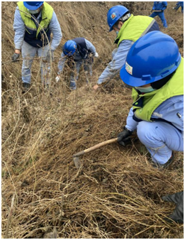 为了充分发挥党员的积极能动性,带动大家的工作积极性,制粉班组在不耽误现场正常工作的情况下,由班组1名党员带领5名人员积极参与此次主题党日活动。大家自备锄头、镰刀、布袋等除草工具,有序到达了除草地点,个个积极认真,分工明确,有拿锄头除草的,有拿镰刀割草的,有拿布袋装草的。一时间,一堆堆杂草仿佛一座座高山,经过近3个小时的行动,铁路道口两边的杂草被我们消灭的干干净净。