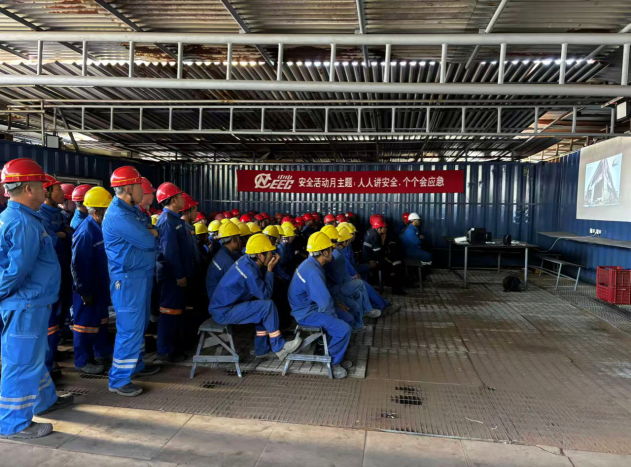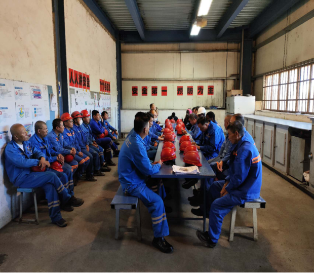半岛电子博茨瓦纳项目部、中国电力工程有限公司博茨瓦纳项目部共同启动2025年“安全生产月”活动:中国电工博茨项目部现场经理兼安全主管赵宁在活动现场发布动员令,以开展“安全生产月”活动为契机,紧紧围绕“人人讲安全、个个会应急——查找身边安全隐患”主题开展好本次活动。全员观看警示宣传片。
