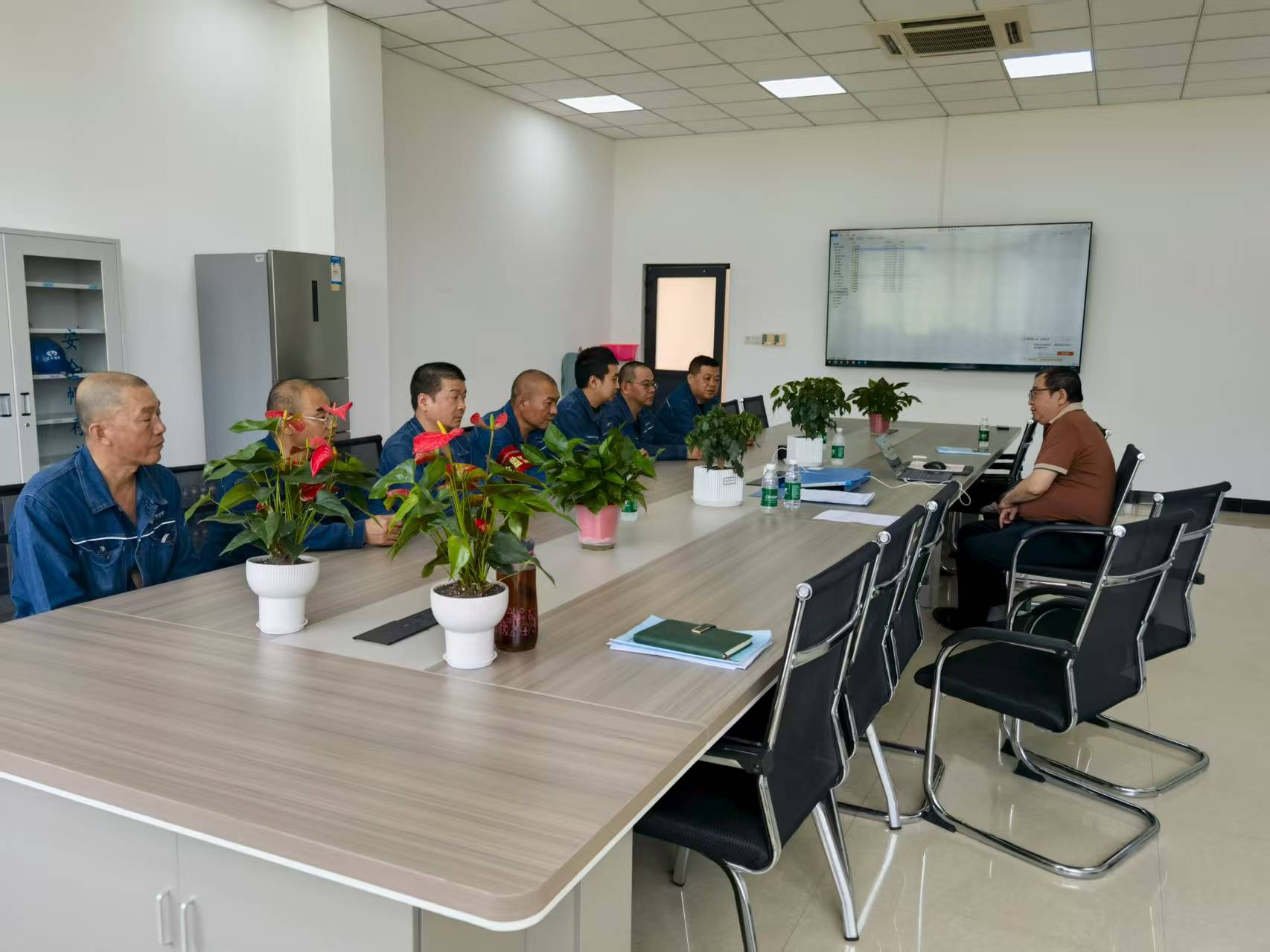 在随后召开的安全技术座谈会上,项目经理王太祥全面汇报了班组近期安全生产情况、设备近期发现的重要缺陷及拟采取的处理措施。刘老师认真听取汇报,针对技术细节与执行难点参与讨论。